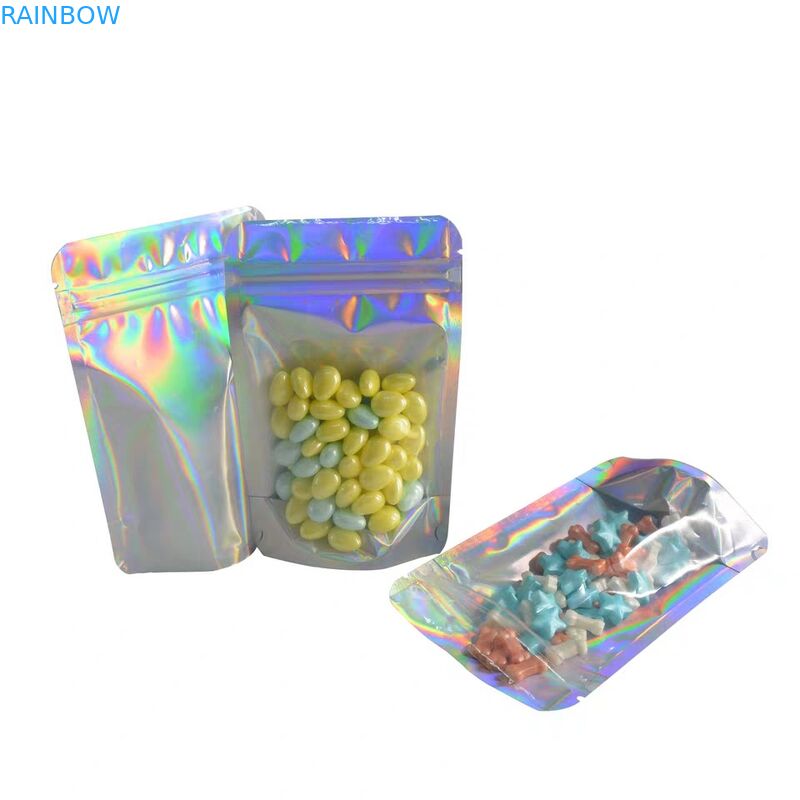 Tiga Sisi Segel Satu Sisi Transparan Jelas Berwarna-warni Laminasi Tas Penyimpanan Kemasan Makanan Plastik Dengan Ziplock